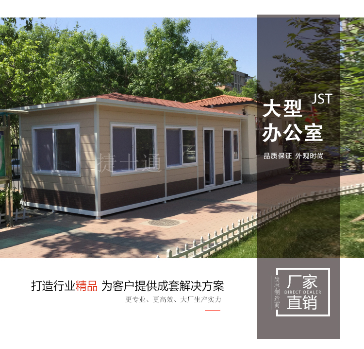 高速服務(wù)站可使用這種大型的戶外辦公室,由于土建不僅費(fèi)時(shí)費(fèi)力,還不環(huán)保,這種裝配式建筑,無需挖地基、使用鋼筋水泥等,只需和廠家確定好尺寸,讓使用位置的地面平整就可以,極其環(huán)保外觀可以根據(jù)您的想法或者根據(jù)您的思路,給您出設(shè)計(jì),出相對(duì)應(yīng)的圖紙,直到您滿意為止,服務(wù)客戶是我們的本職