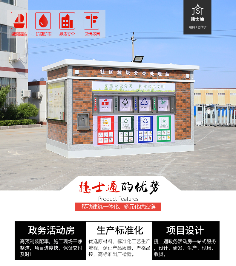 捷士通生產(chǎn)的主要是環(huán)保分類垃圾房和大型垃圾房。大型垃圾房廠家,擁有多條垃圾房產(chǎn)品線,垃圾房?jī)?nèi)部配備各種技能技術(shù)和*技術(shù),在垃圾房領(lǐng)域占有制高點(diǎn)。